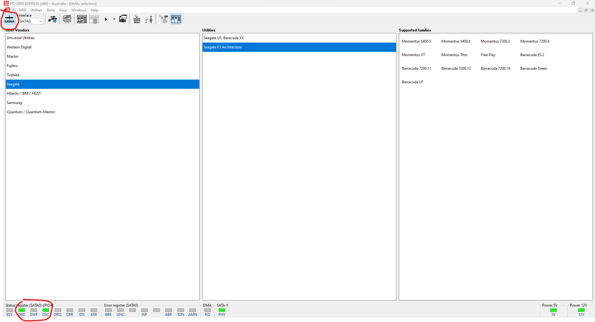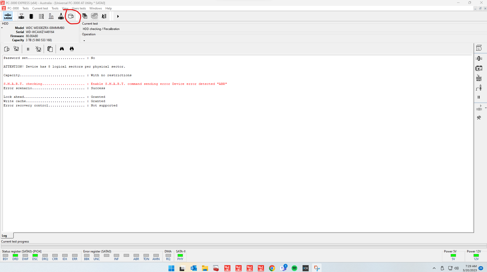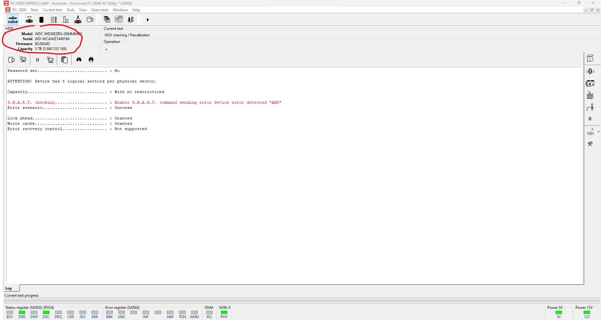 Plug in drive into PC3000 and wait for it to become ready