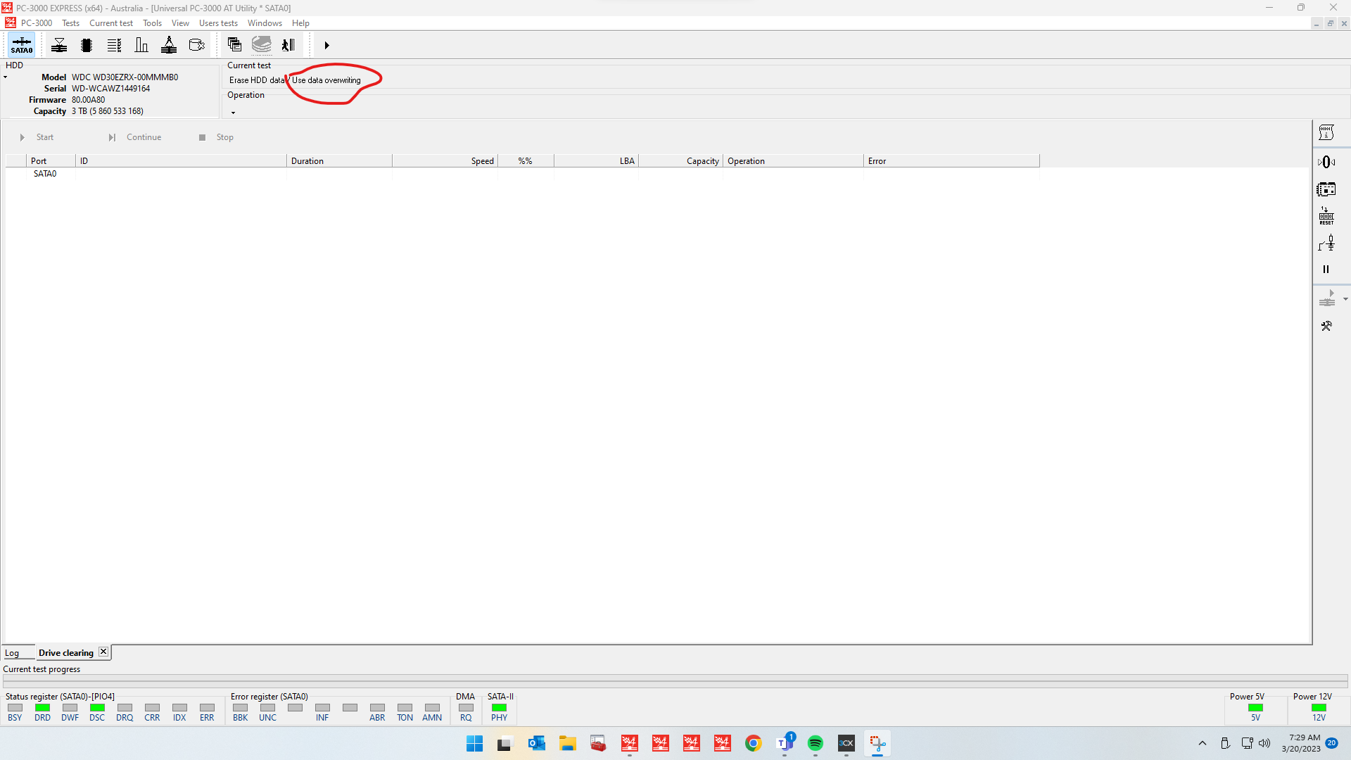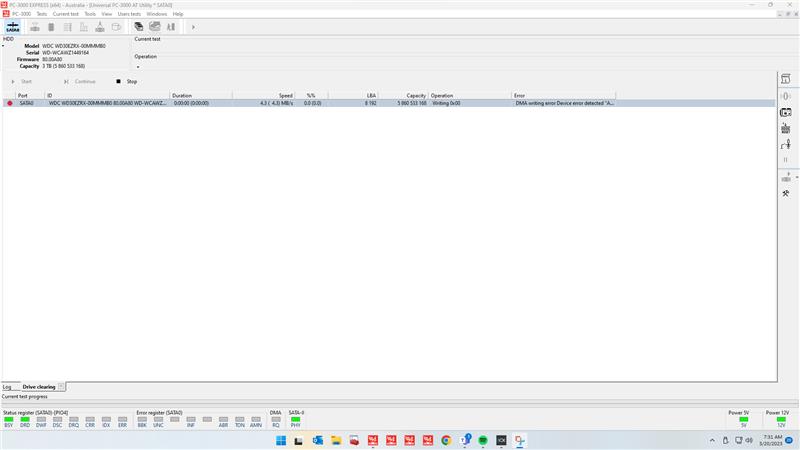 ERASING DRIVE IN PC3000