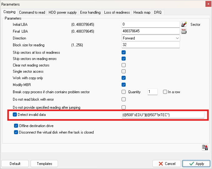 If the drive goes constantly busy and switches itself off,but you have to techmode patch it,you can make a script in Data Extractor Parameters: