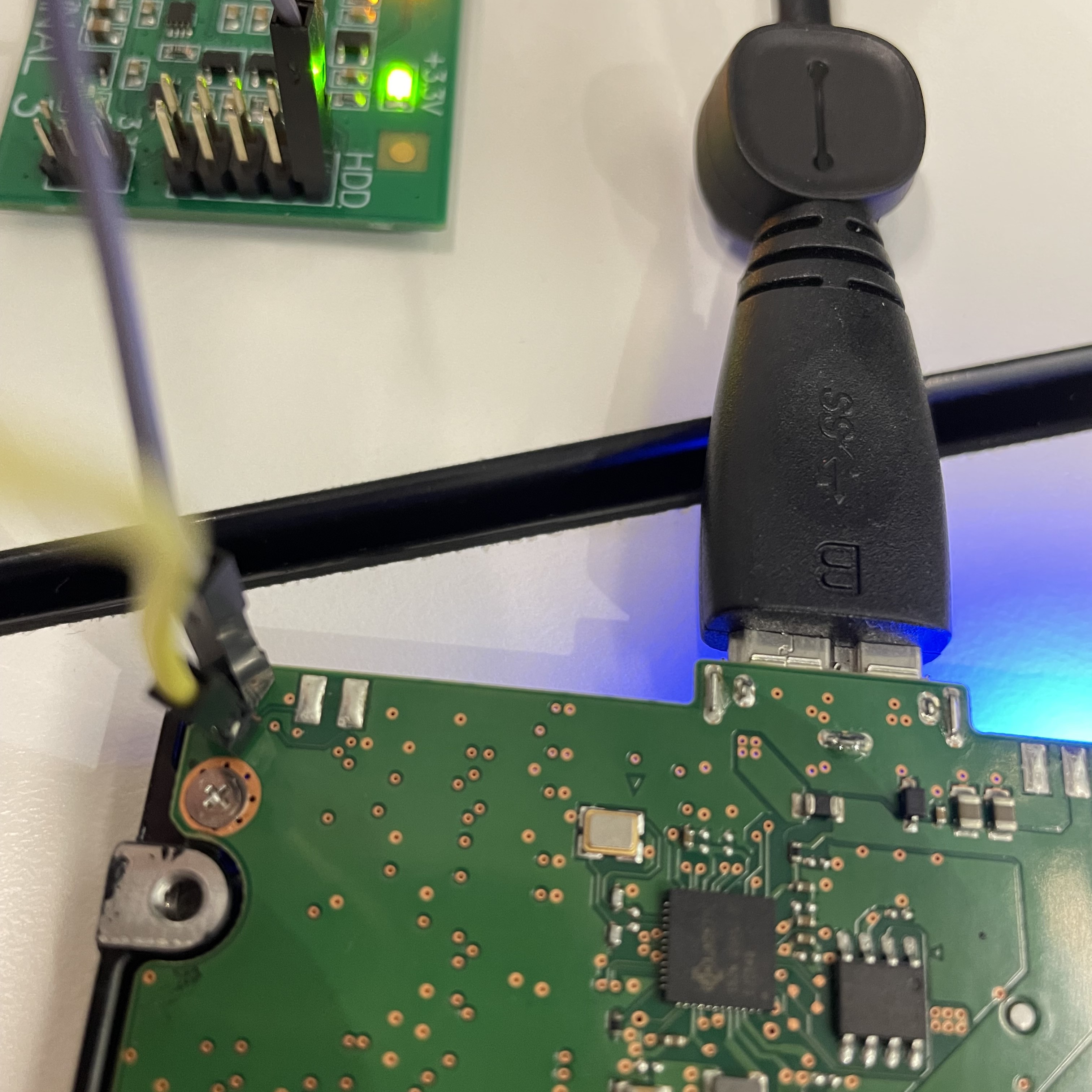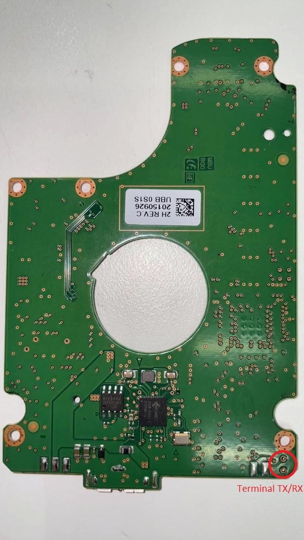 - Connect terminal to patient drive. Will need to use the test points, as there are no pins. This hddoracle post has some information regarding finding the terminal points.